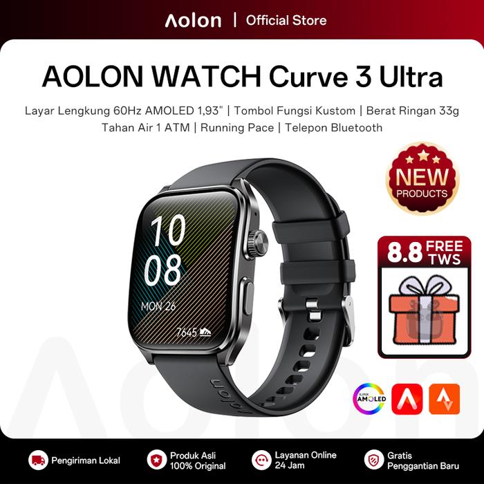 【Amoled】Aolon Curve 3 Ultra Jam Tangan Smartwatch 45Mm Layar Amoled 60Hz Tombol Kustom Telepon Bluetooth Pemantauan Tidu
