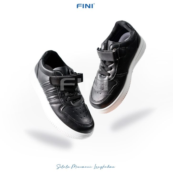 Sepatu Sekolah FINI Kulit Casual Anak Laki Laki Perempuan Warna Hitam Polos Hitam Lis Putih Size 27-38 Gratis Ongkir