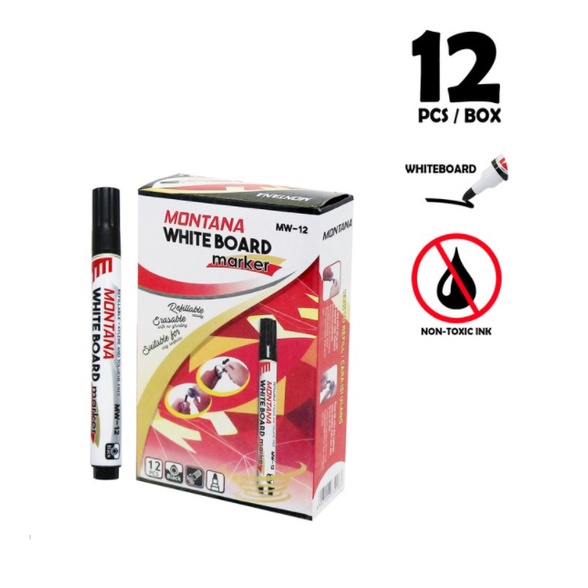 Spidol Whiteboard Marker Montana 12pcs Spidol Bisa Dihapus Boardmarker