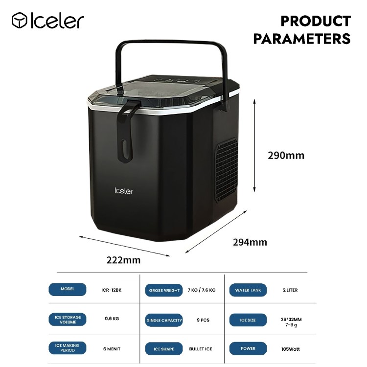 Iceler Mesin Es Portable Ice Maker 12 Kg per Hari dengan 2 Handle