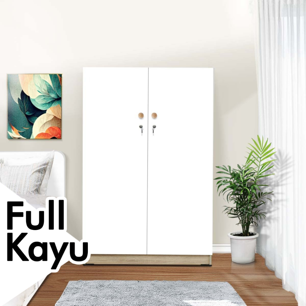 KIRANA Hayden - Lemari Pakaian Kayu Lemari Baju Wardrobe Putih Mini 2 Pintu Modern Minimalis