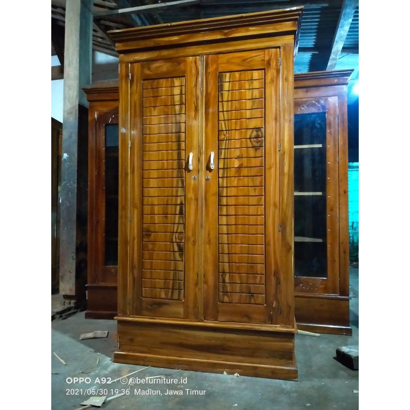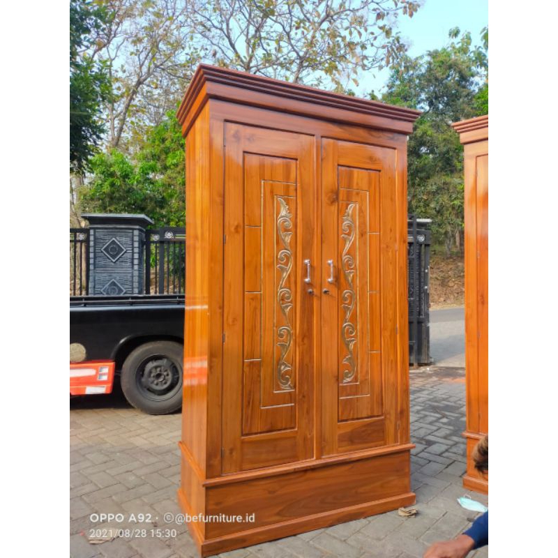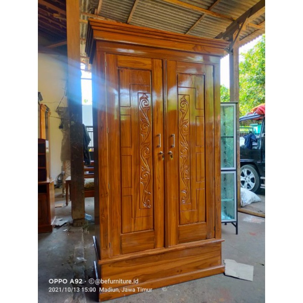 lemari pakaian 2 pintu kayu jati / lemari baju murah / lemari grosir