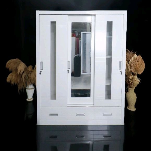 Lemari pakaian 3 pintu sliding plywood duco/lemari anti jamur anti rayap