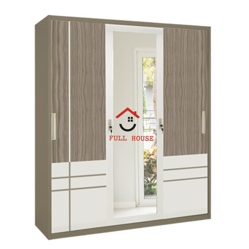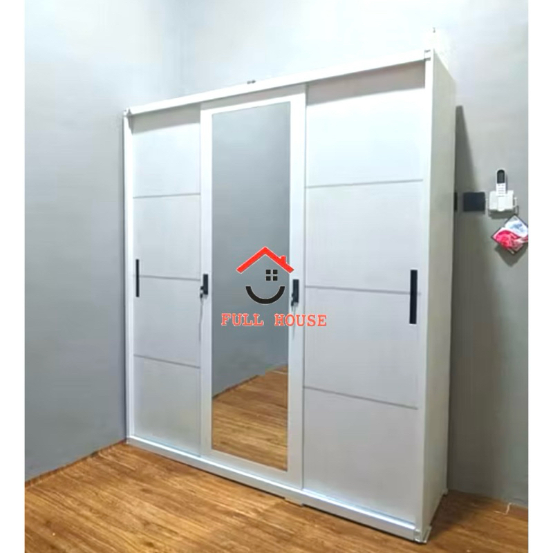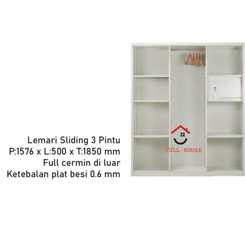 (fullhouse furniture) OLYMSTEEL lemari pakaian full besi 3 pintu geser sliding dengan kaca panjang dan gantungan gamis t