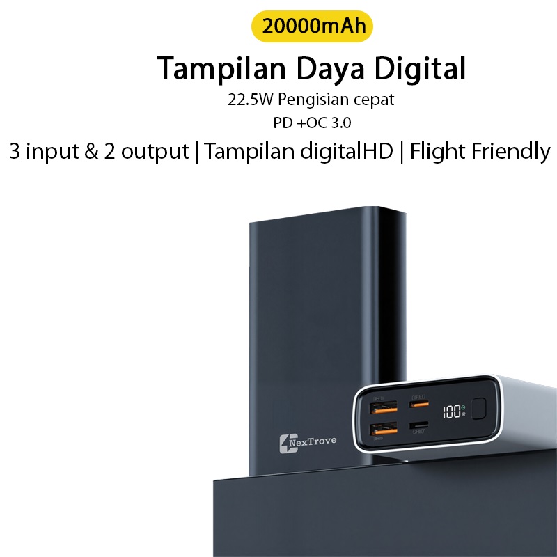 Powerbank 20000mAh 22.5W Kapasitas Besar Fast Charging power bank 4 Port USB Type C LED Original NexTrove