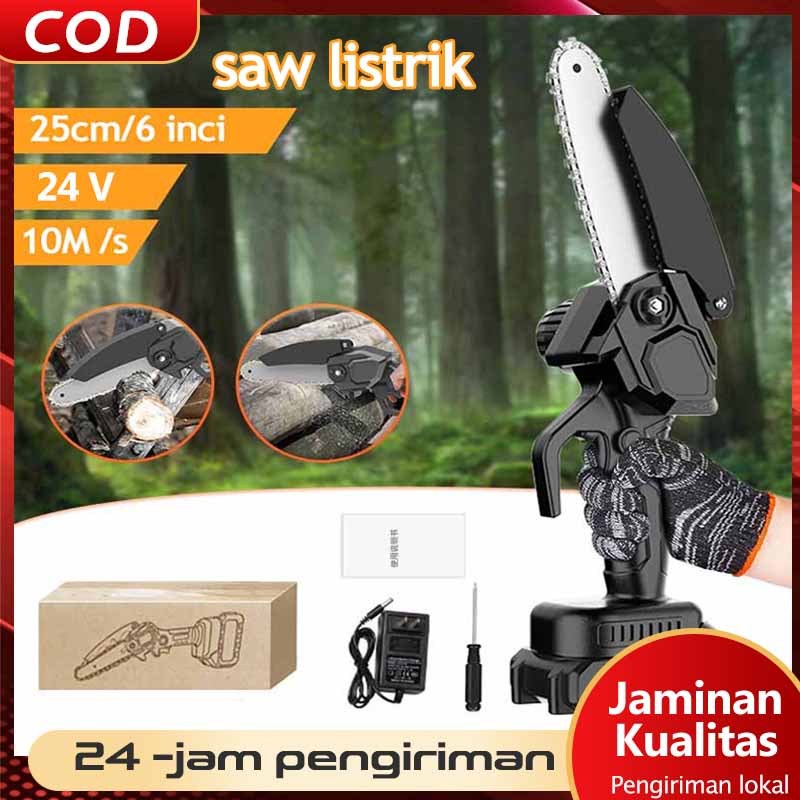 Chainsaw mini 6 Inch Chainsaw Chain Tanpa Kabel Gergaji Listrik Genggam Untuk Rantai Elektrik Mini Portable Memotong Kay