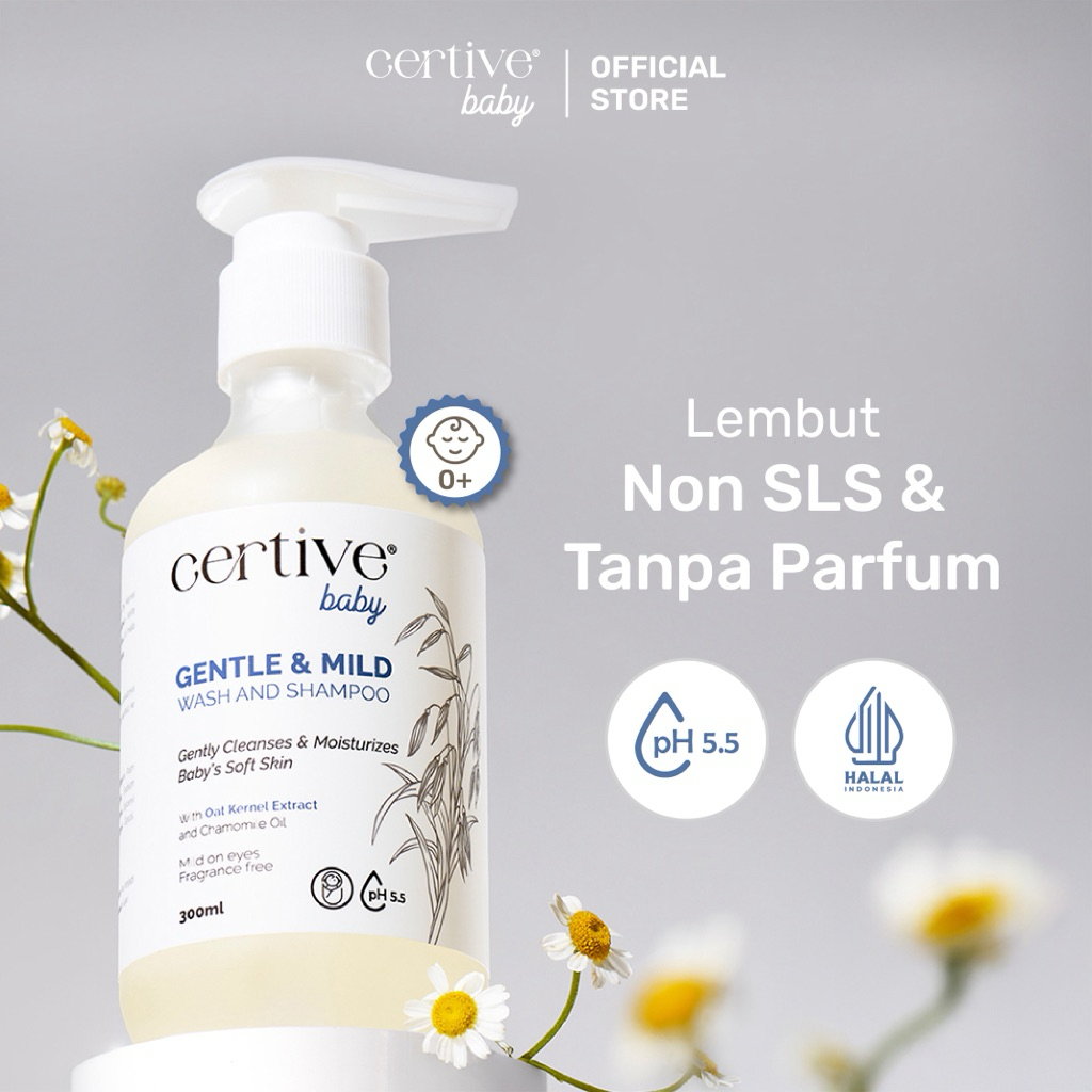 Certive Baby Gentle & Mild Wash and Shampoo 300ml - Sabun dan Sampo Bayi dan Anak Premium - Aman Untuk Kulit Sensitif - NO SLS, NO Paraben, NO Fragrance - Dengan Oat Kernel Extract