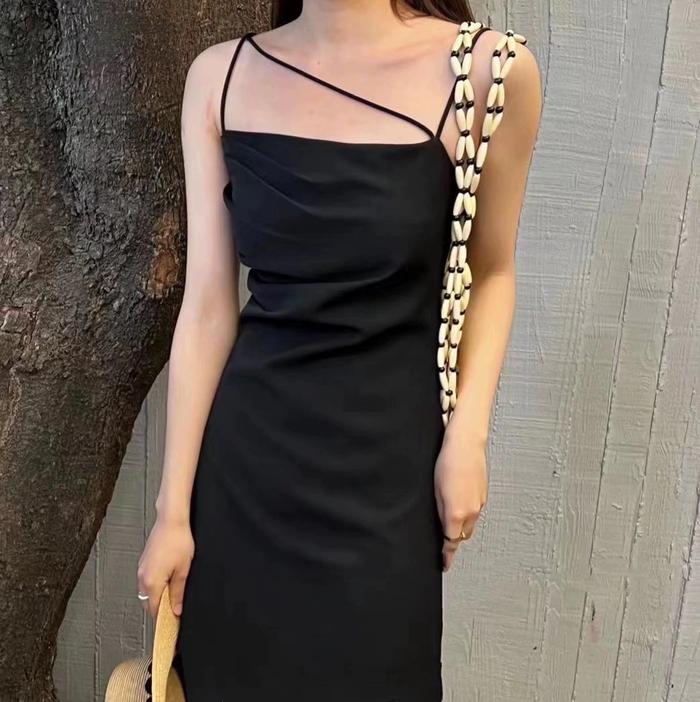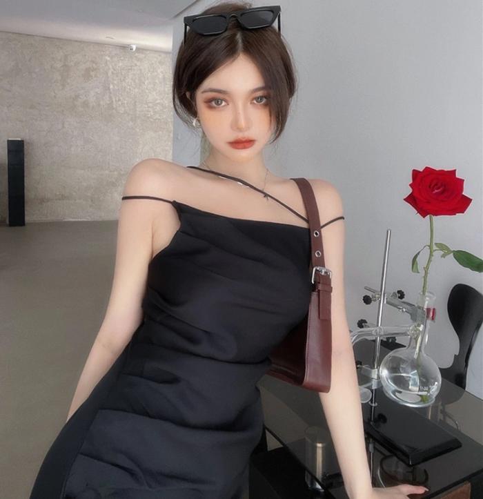 【Premium】Pleated Satin Slit Short Dress 7133