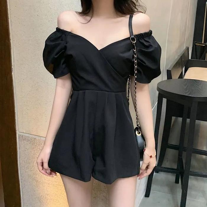 Jumpsuit Short Puff Sleeve Off Shoulder Wide Leg Skirt 1127 (S/M/L/XL)