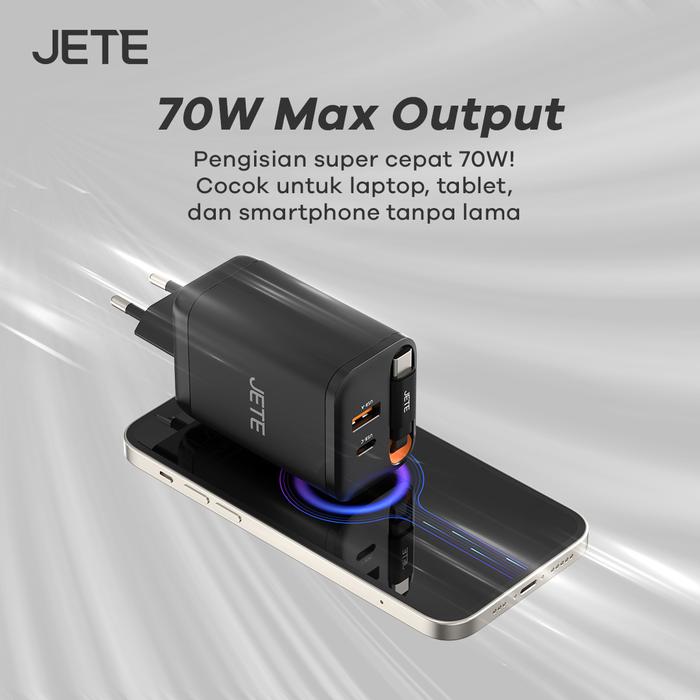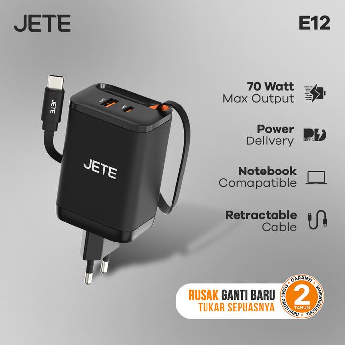 Charger HP 70Watt JETE E12 Fast Charging Notebook Compatible with Builtin Cable Retracable - Garansi