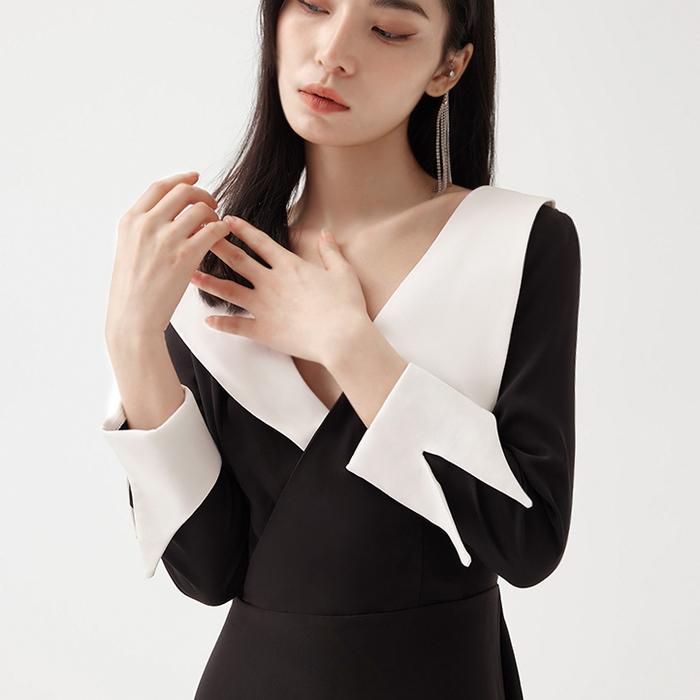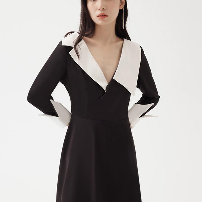 【Gulla】Asymmetric Collar A-Line Dress 7783 (S/M/L)