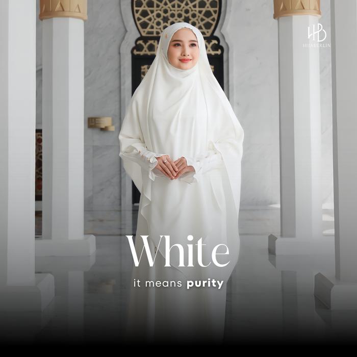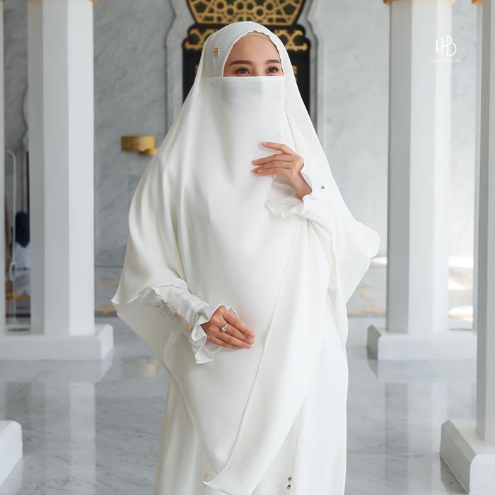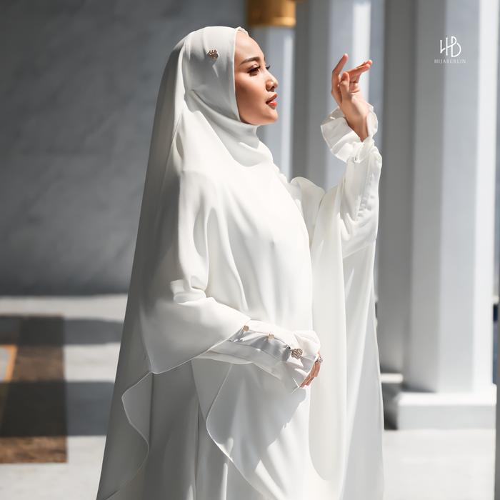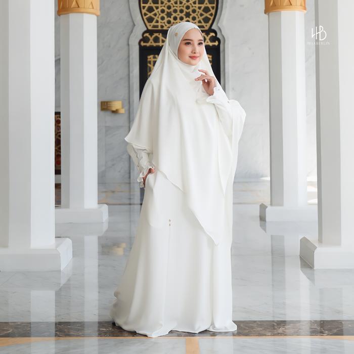 Hijaberlin - Maryam Dress White Set Khimar FK Mazen Anti UV Gamis Syar'i Premium Haji & Umroh