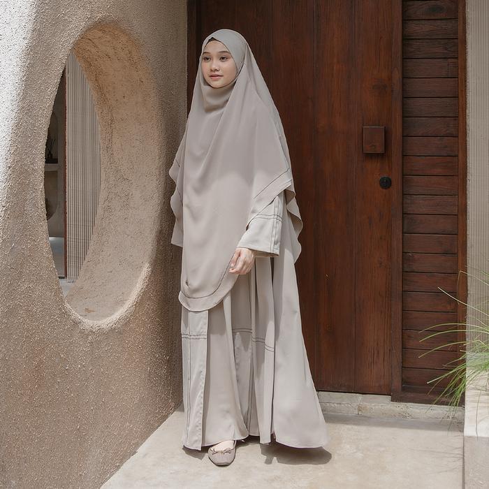 Lozy Hijab - Havina Abaya Set (Abaya Gamis Set French Khimar Haji dan Umrah Bahan Arabian Anti UV) Dress Muslim Wanita