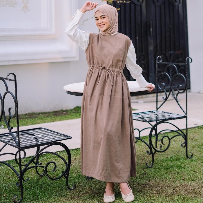 Lozy Hijab - Zalina Dress (Overall Cotton Linen) Linen Panjang Simple Muslim Wanita
