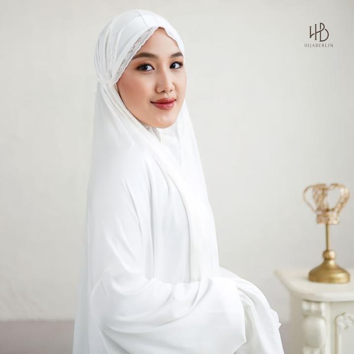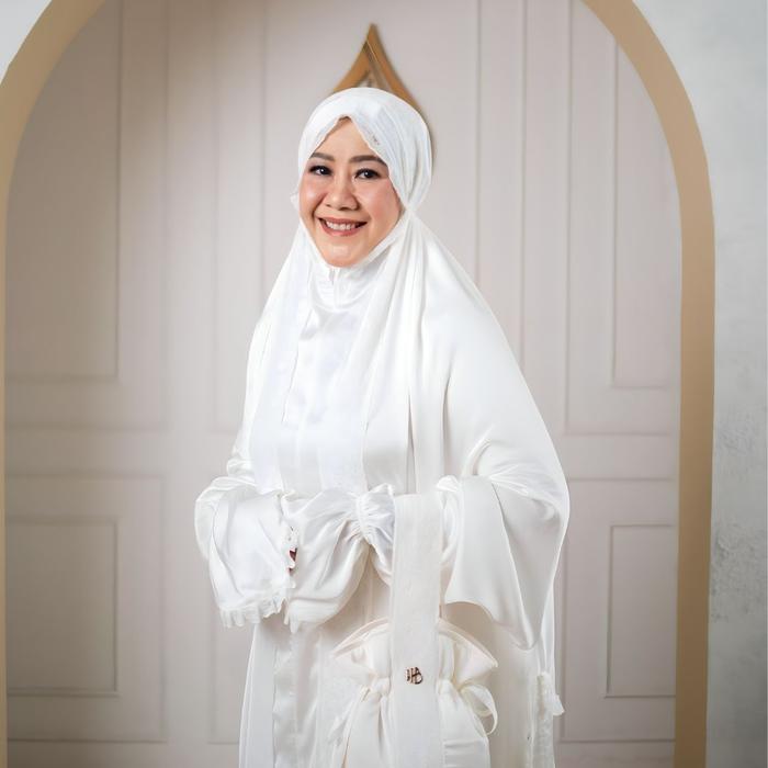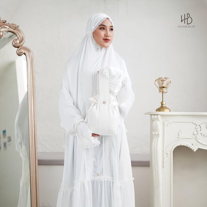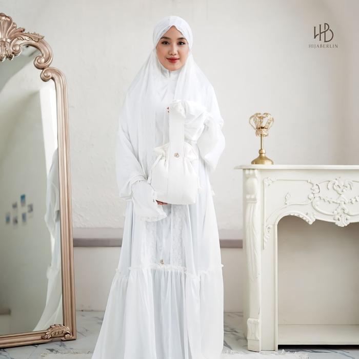 HIJABERLIN - Asma Prayer Dress Off White - Mukena Premium & Exclusive, Mewah, Best Quality, Limited Edition