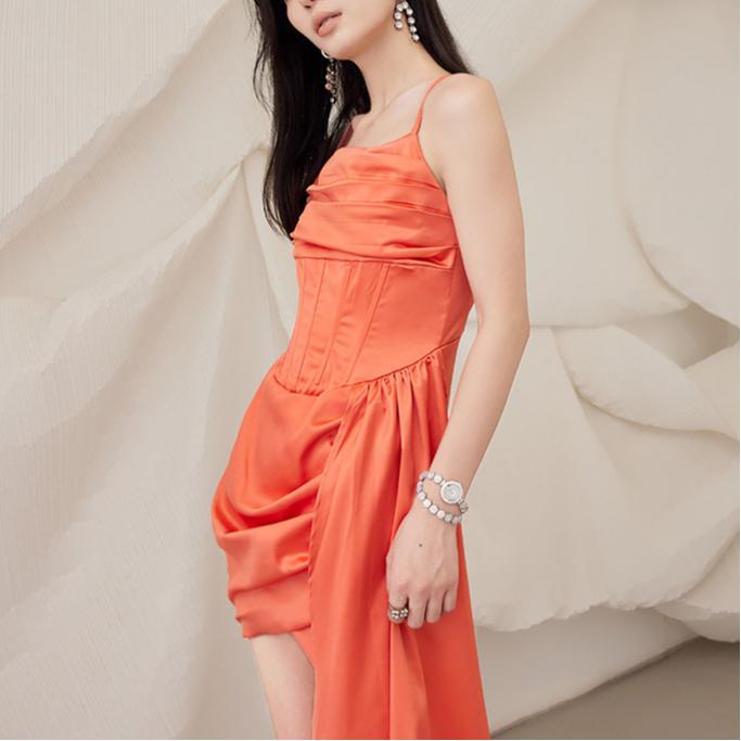 【Gulla】Strap Satin Drapped Dress 7613 (S/M/L)