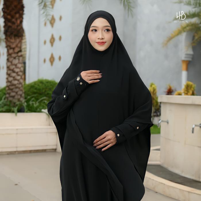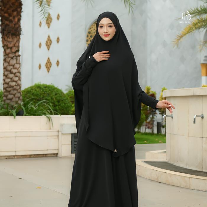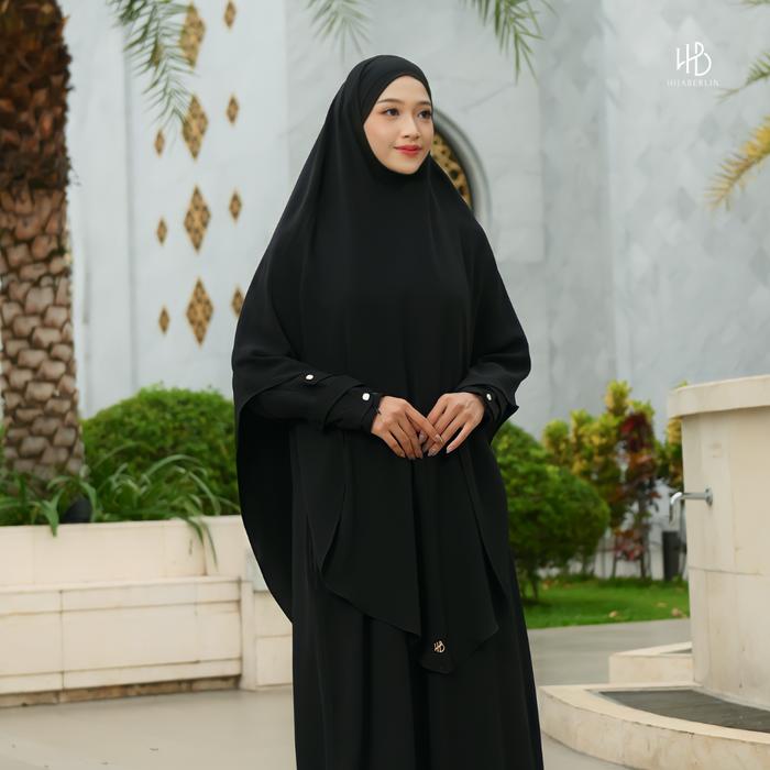 Hijaberlin - Nusaibah Dress Black Set Khimar FK Mazen Anti UV Gamis Syar'i Premium Haji & Umroh