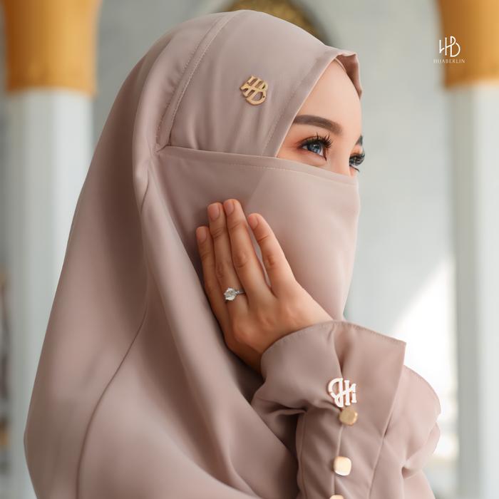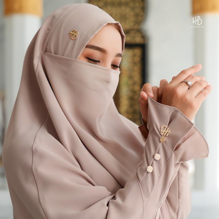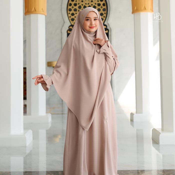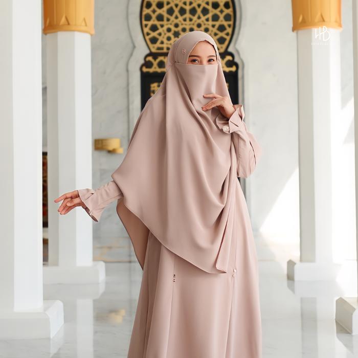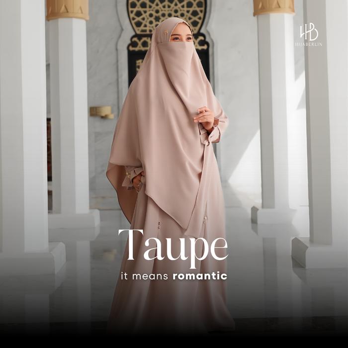 Hijaberlin - Maryam Dress Taupe Set Khimar FK Mazen Anti UV Gamis Syar'i Premium Haji & Umroh