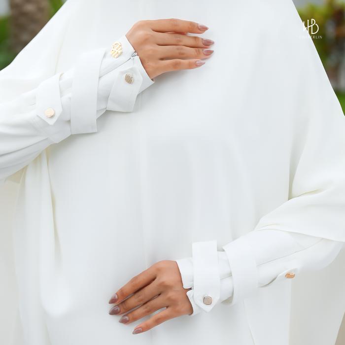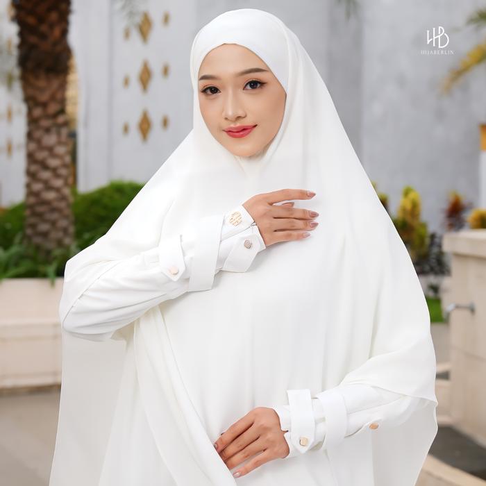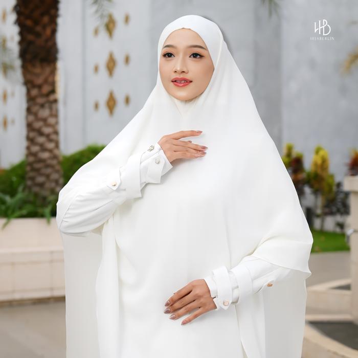 Hijaberlin - Nusaibah Dress White Set Khimar FK Mazen Anti UV Gamis Syar'i Premium Haji & Umroh