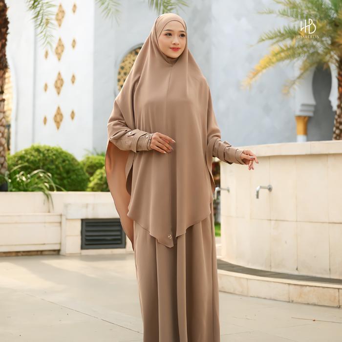 Hijaberlin - Nusaibah Dress Wood Set Khimar FK Mazen Anti UV Gamis Syar'i Premium Haji & Umroh