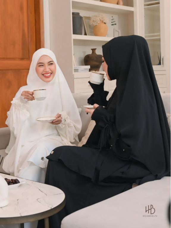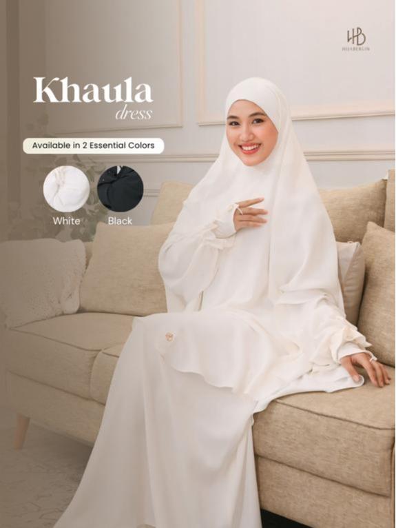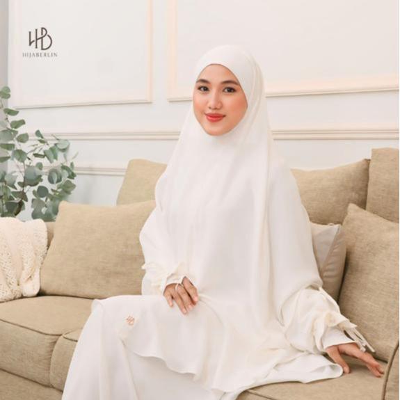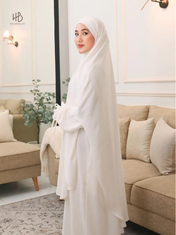 HIJABERLIN - Khaula Dress White Gamis Syari dengan Bahan Premium Umroh Wanita