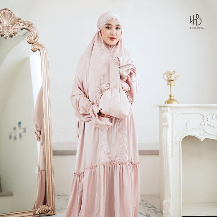 HIJABERLIN - Asma Prayer Dress Rose - Mukena Premium & Exclusive, Mewah, Best Quality, Limited Edition