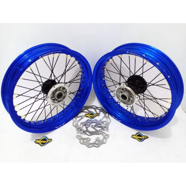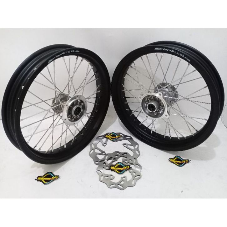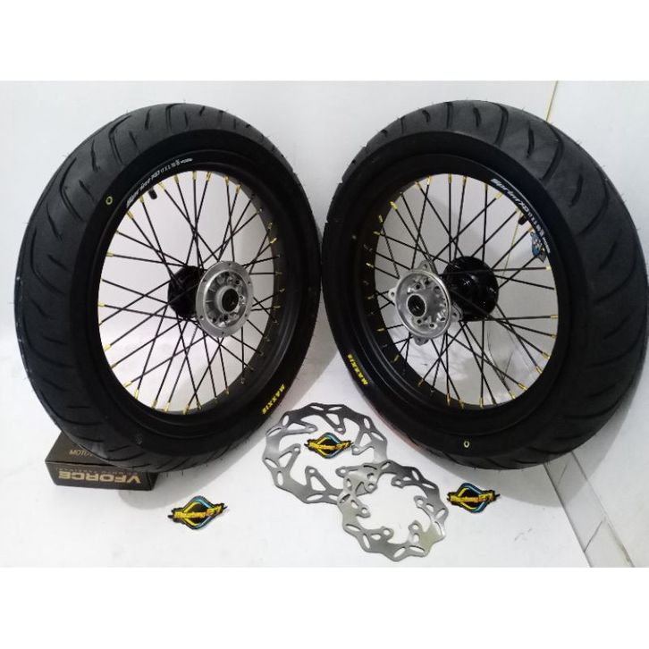 Sepaket Velg Supermoto Ring 17 250 300 350 - Paketan Velg KLX 150 Tromol Set Jari-jari Plus Ban Rakit