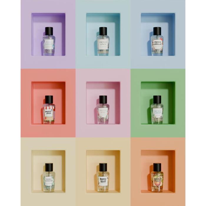 Cloud Fantasy, French Linen, French Vanilla, Fruitee Fresh, Honey Blush, Jasmine Blossom, Persian Peach, Spring in New York, Velvet Rose