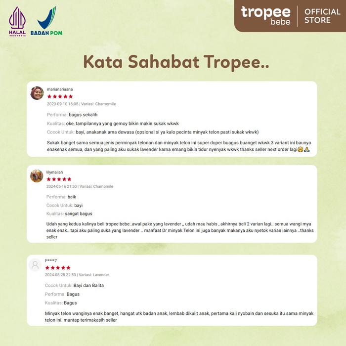 Tropee Bebe Telon Essential Oil 100ml | Minyak Telon Aromatic Hangat Tahan Lama | Minyak Berkhasiat | Minyak Wangi Bayi