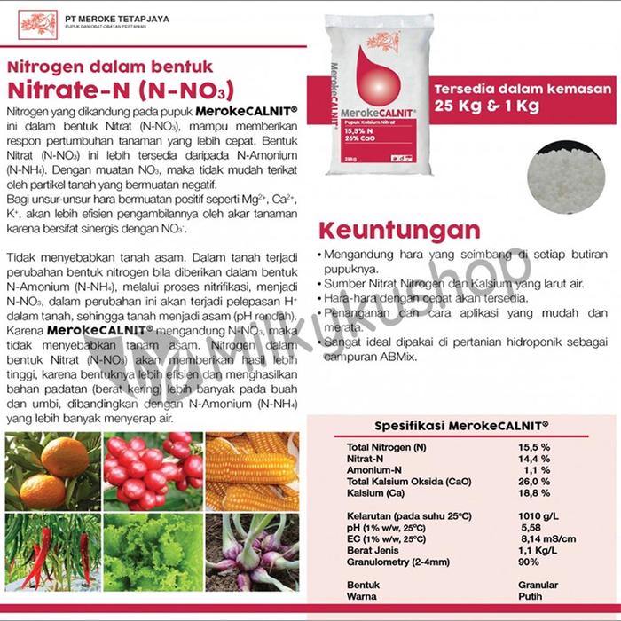 PUPUK MEROKE CALNIT 1 KG K3m45AN PABRIK KALSIUM NITRAT HIDROPONIK