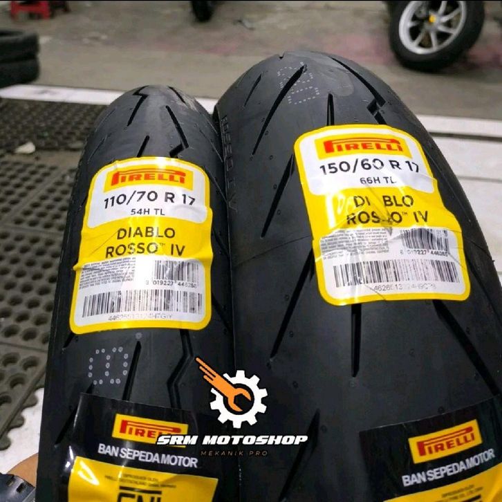 SEPASANG Ban Pirelli 110/70-17&150/60-17 Diablo Rosso IV RADIAL TIPE TUBLES Made In GERMANY