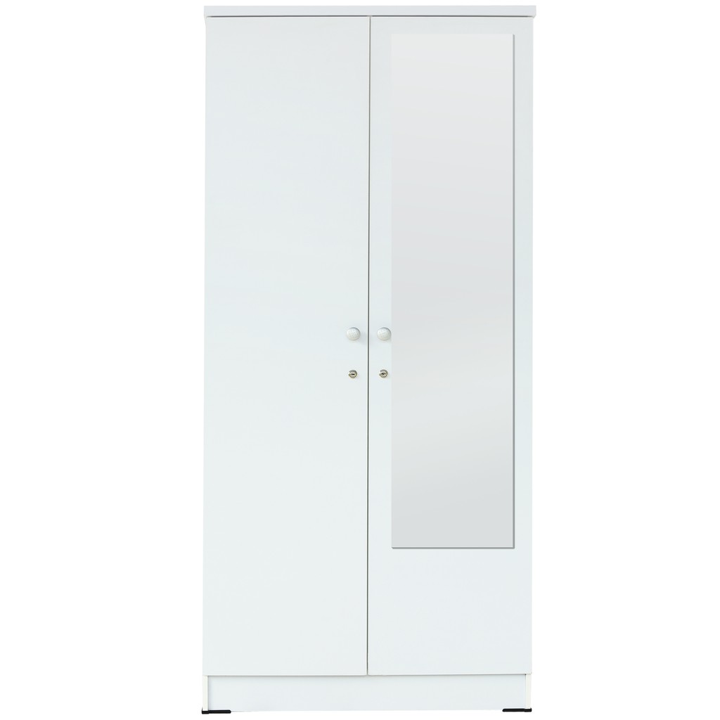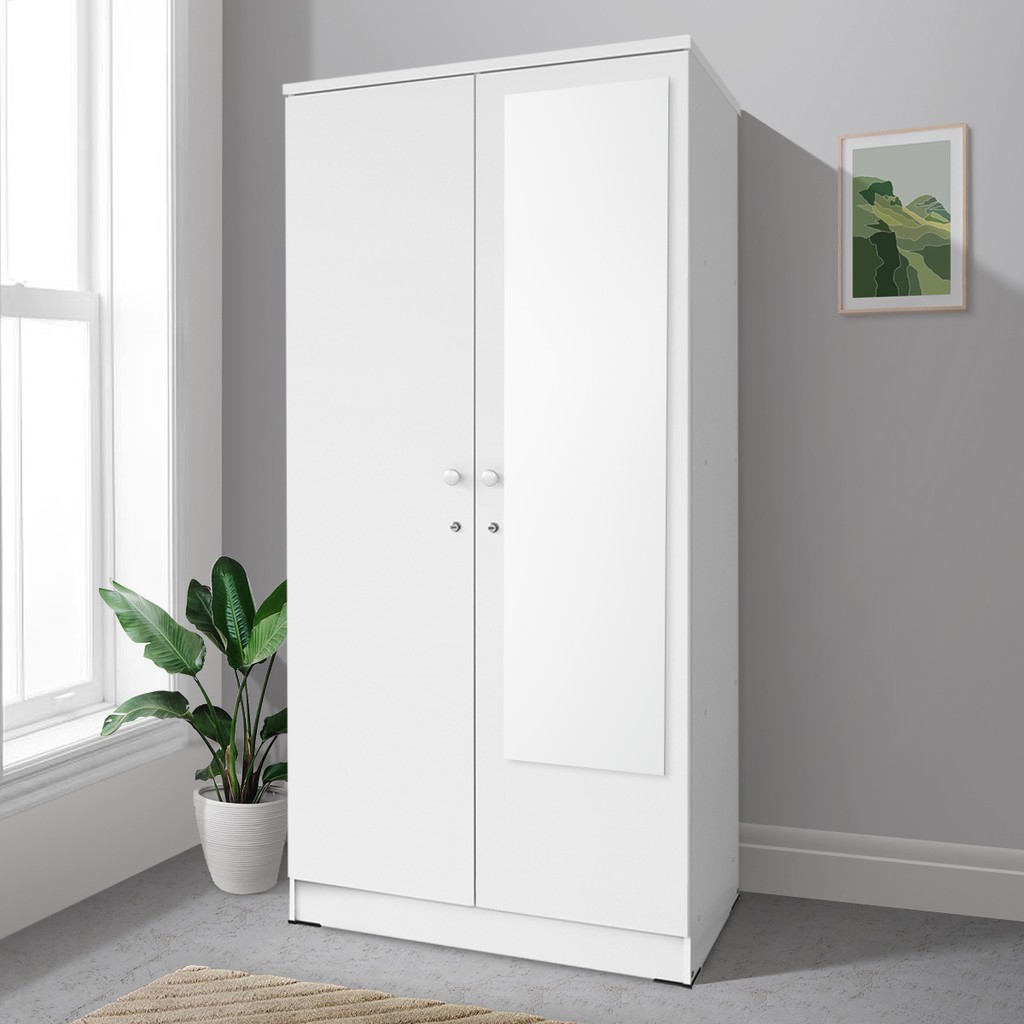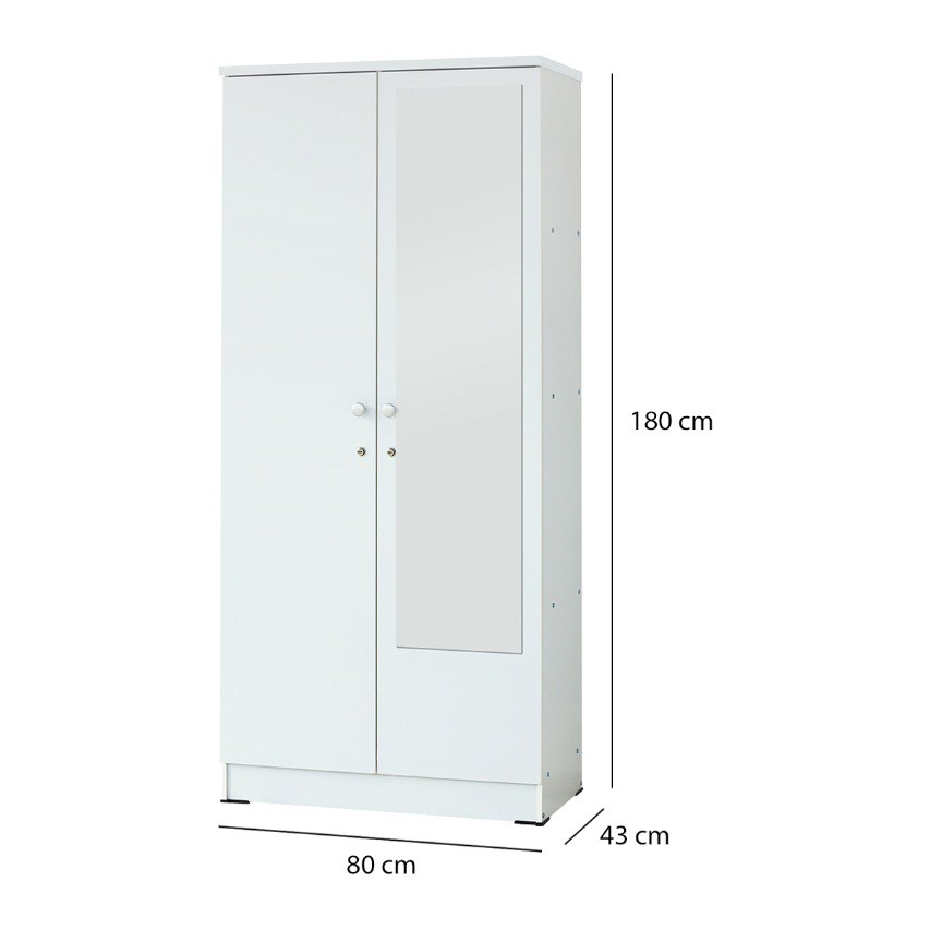 KIRANA Boston - Lemari Pakaian Kayu Wardrobe 2 Pintu Cermin Kaca Putih White Modern Minimalis
