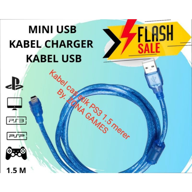 kabel USB cas stik PS3 biru 1.5meter