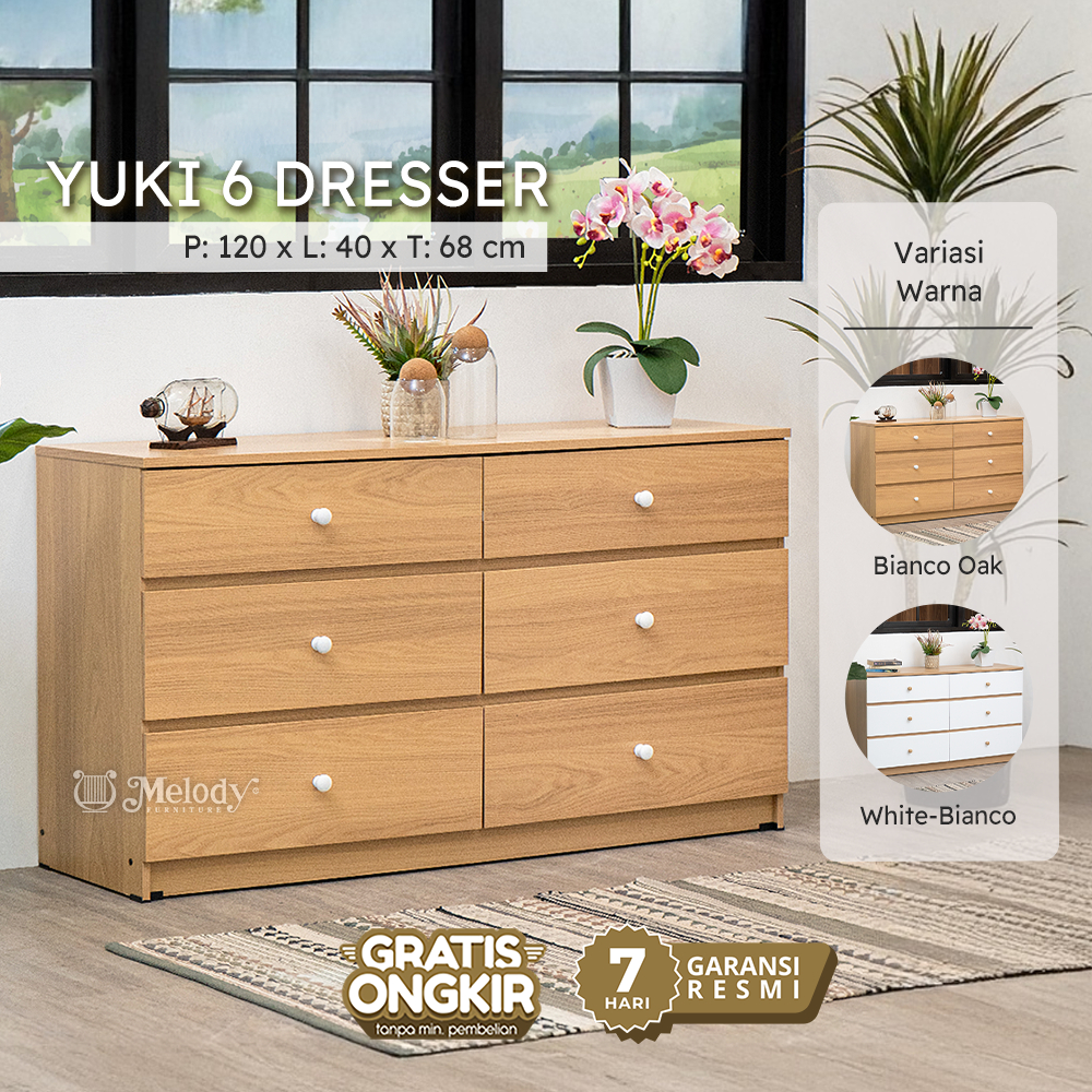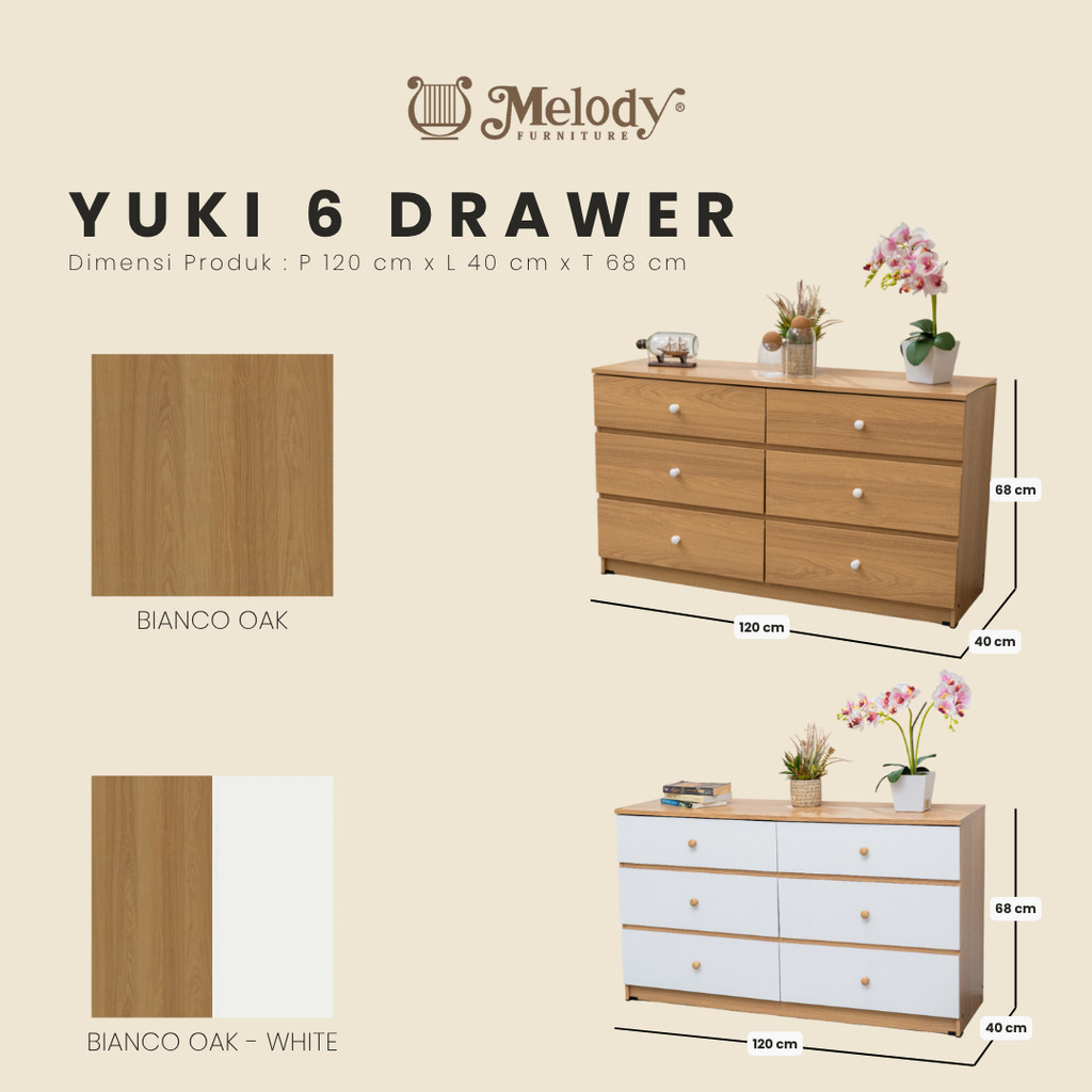 Melody Furniture - Lemari Laci / Lemari Baju Minimalis / Lemari Serbaa / Lemari Susun Kayu - Yuki 6 Chest Drawer 120cm