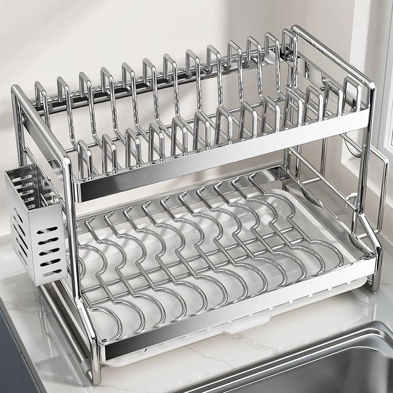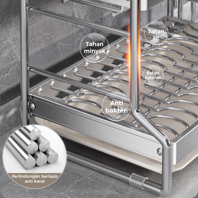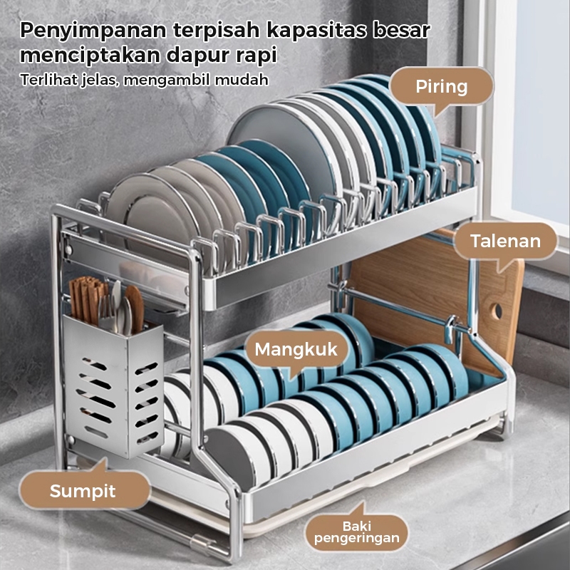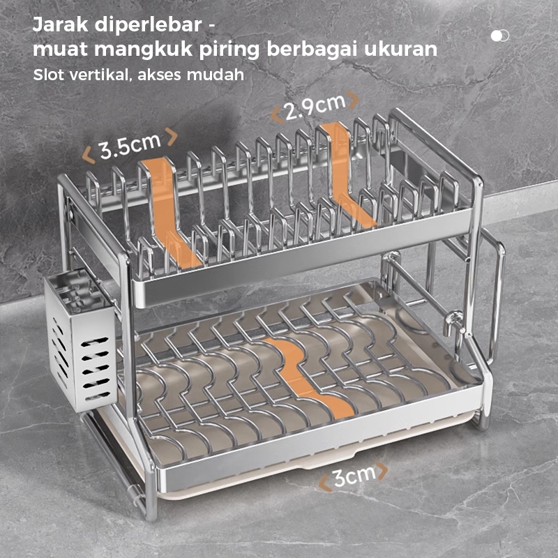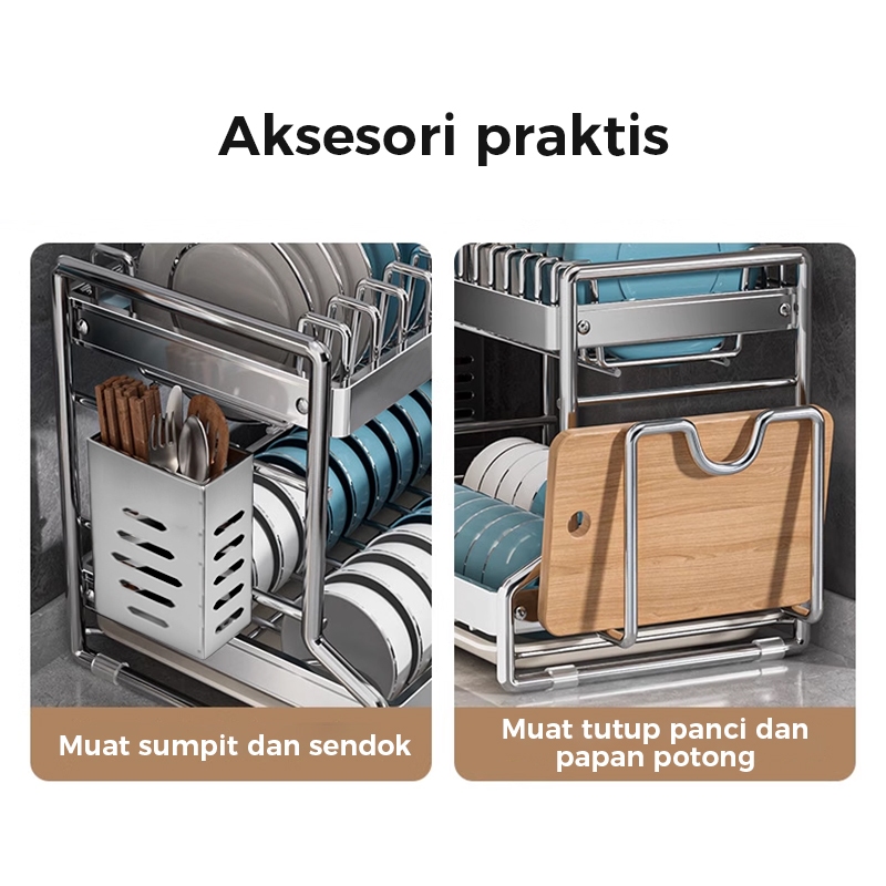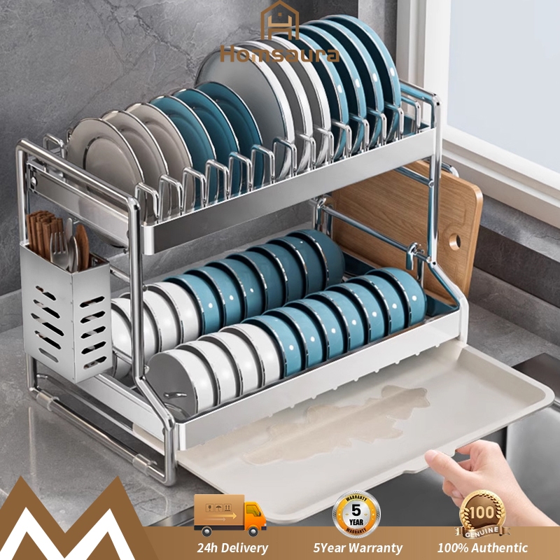 Homsaura Rak Piring Stainless Steel Rak Cuci Piring Dish Rack Rak Pengering Piring Rak Peralatan Dapur Dengan Aksesoris
