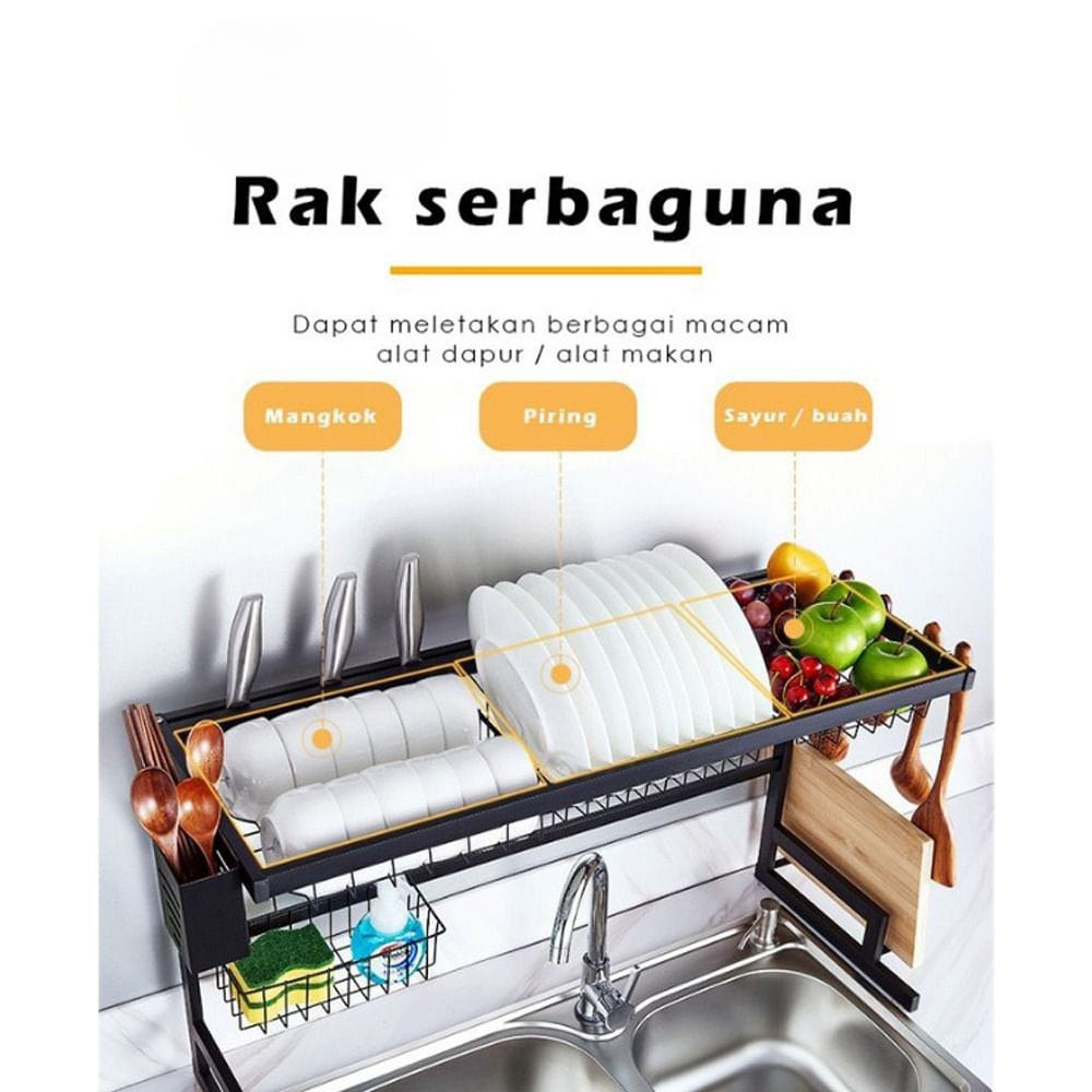 Rak Dapur Stainless Hitam Rak Wastafel Rak Piring Dapur Kokoh Kuat Dengan 4 UKURAN