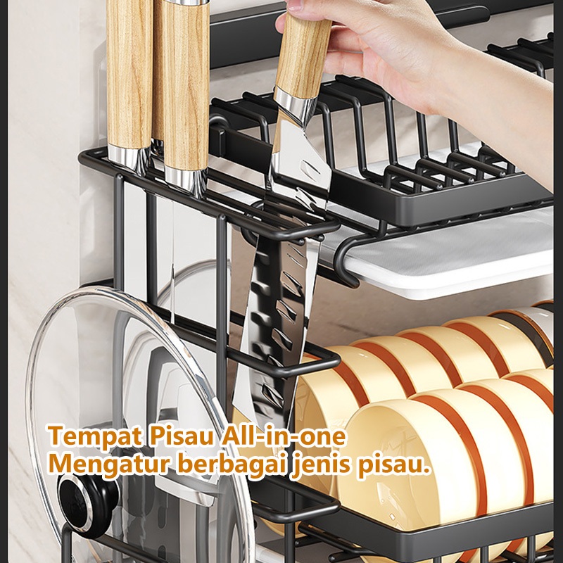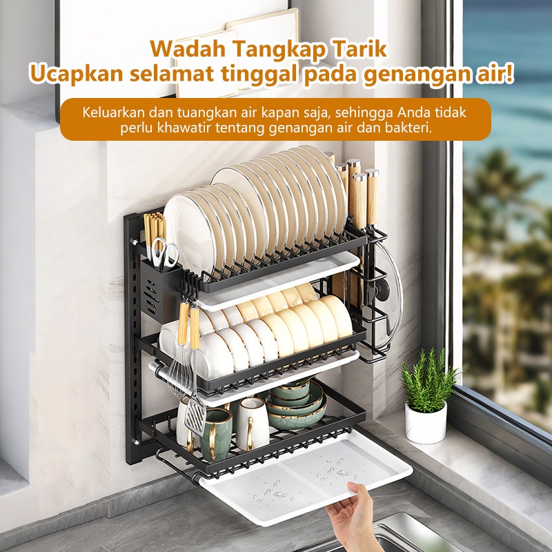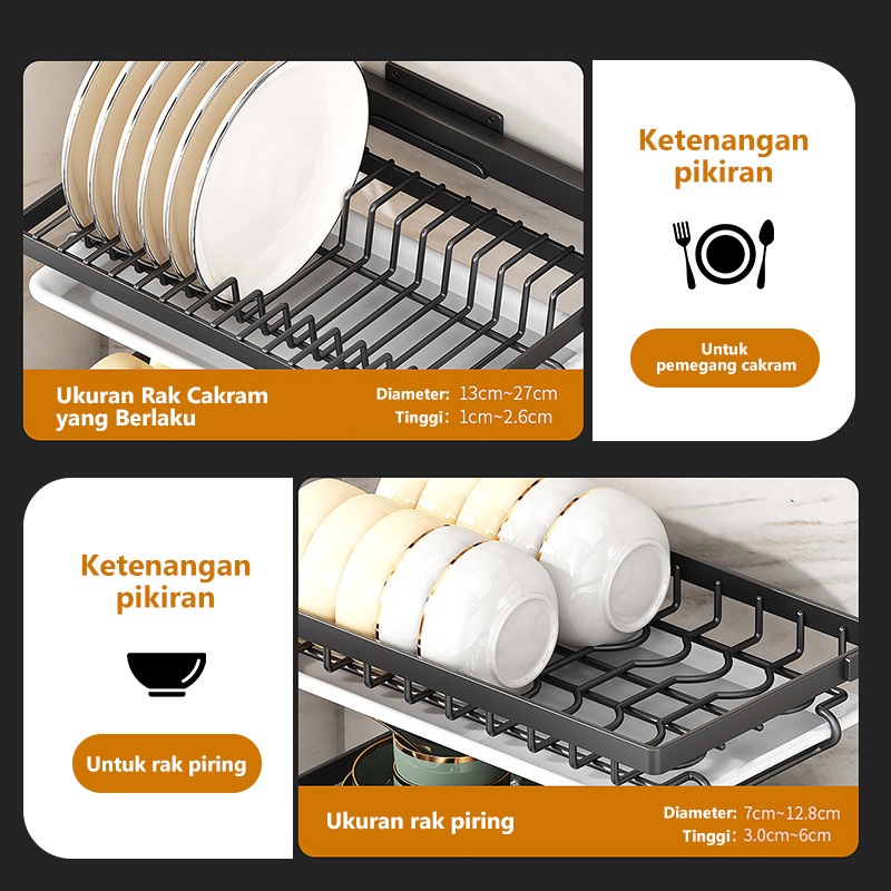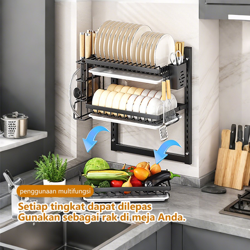 Rak Piring Stainles Steel Gantung Dinding Rak Piring Gantung 2 3 Susun Rak Piring Anti Karat Rak Penyimpanan Mangkuk