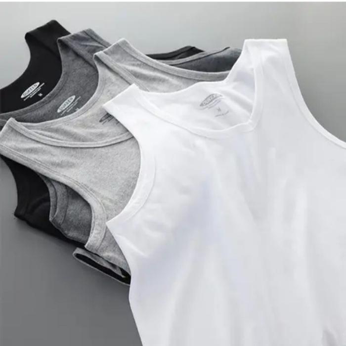 singlet PROMO !!! PAKET HEMAT 4 PCS TANKTOP POLOS KATUN PREMIUM PUTIH HITAM Fit Santai baju kaos dalam pria dewasa