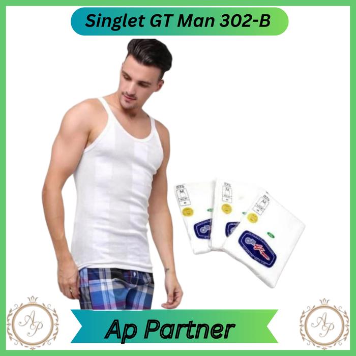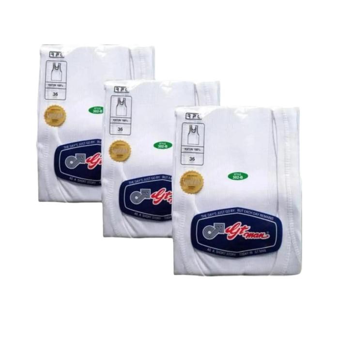 Grosir 3Pcs Singlet Laki Laki / Pakaian Dalam Pria Merk Gt Man Bahan Katun Warna Putih Size 32