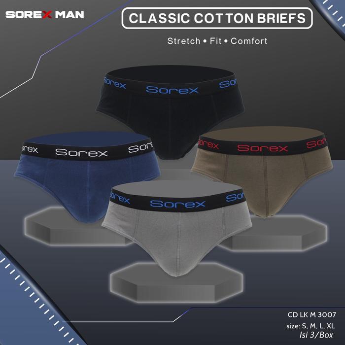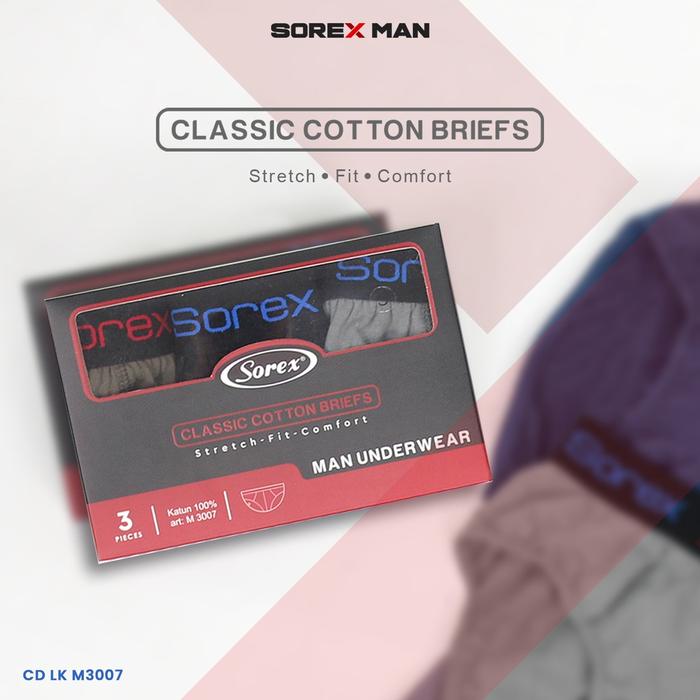 (3 PCS) Sorex Man Celana Dalam Segitiga Pria CD Cowo Classic Katun Briefs LK M 3007