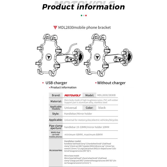 Motowolf MDL2830 Dudukan Handphone Stang Spion Motor Phone Holder HP Motorcycle Handlebar Mirror