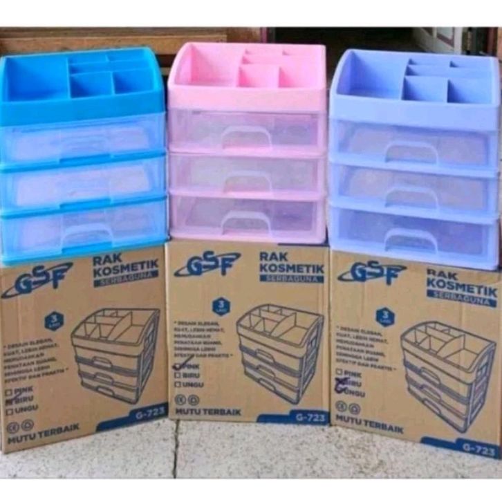 Rak Kosmetik 3 Laci Bahan Dasar Plastik Ukuran 23.3x17x26.8cm - Penyimpanan