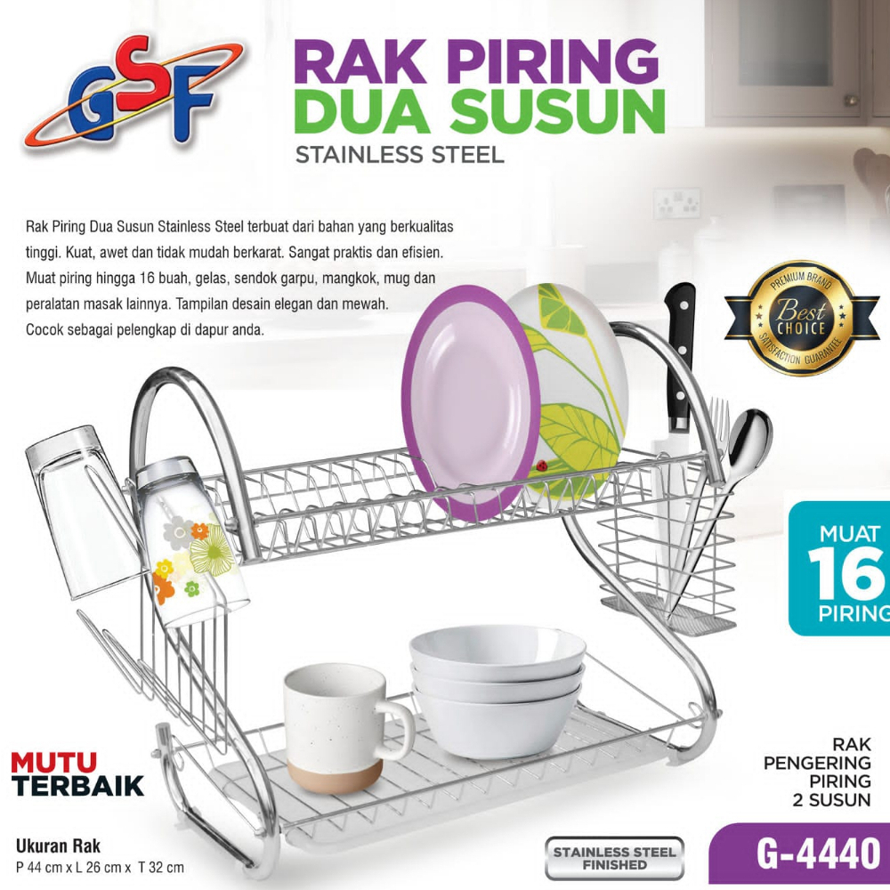 (G-3340) (G-4440) Rak Piring/ Rak Piring Minimalis / GSF RAK PIRING Stainless Minimalis 2 Susun Tingkat Peralatan Dapur