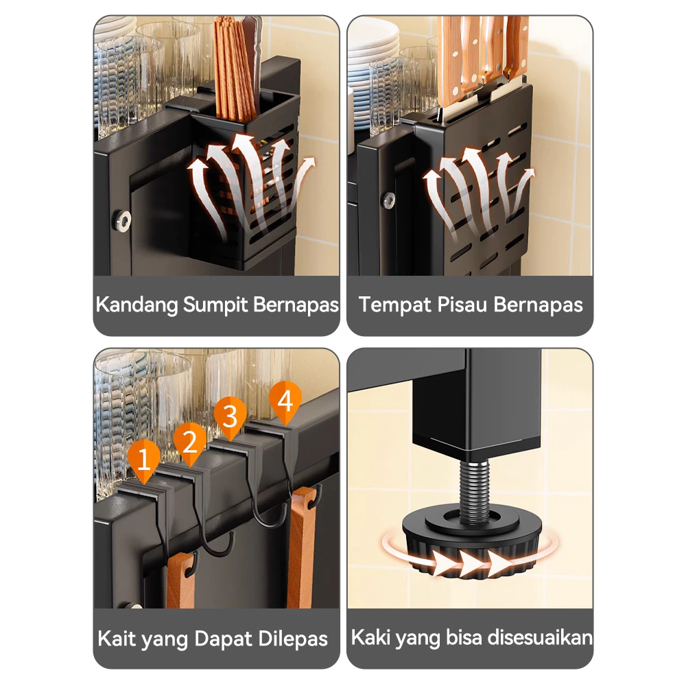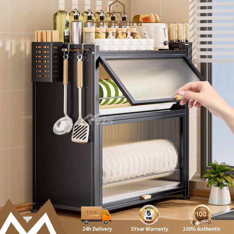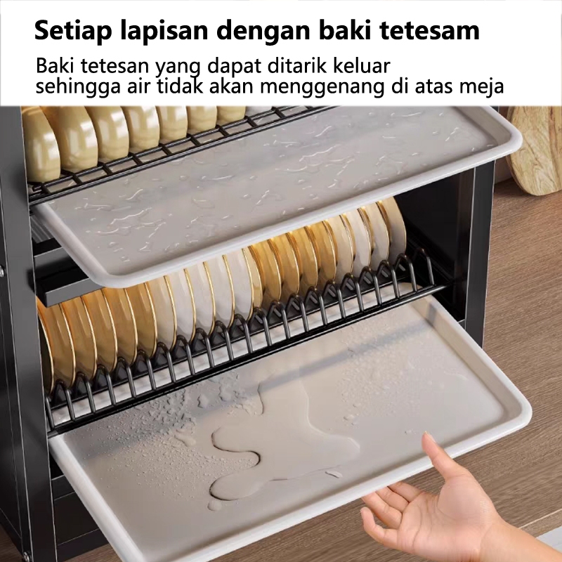 Homsaura Rak Piring / Rak Piring Tertutup / Rak Cuci Piring / Rak Piring Stainless Steel / Lemari Rak Piring Minimalis /