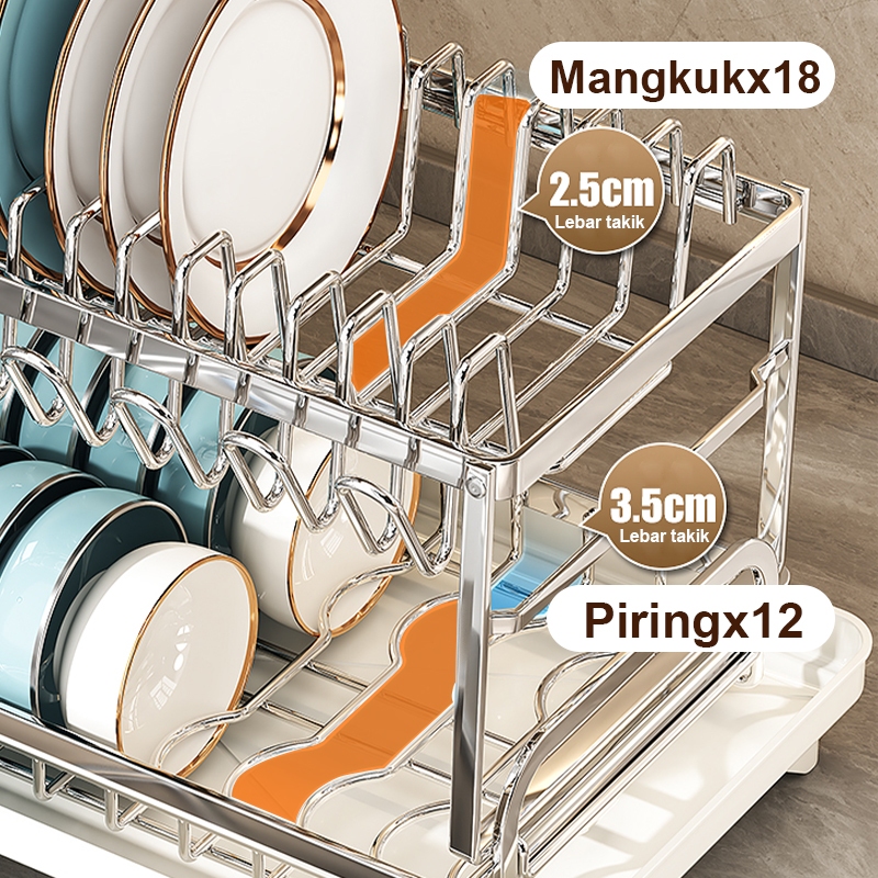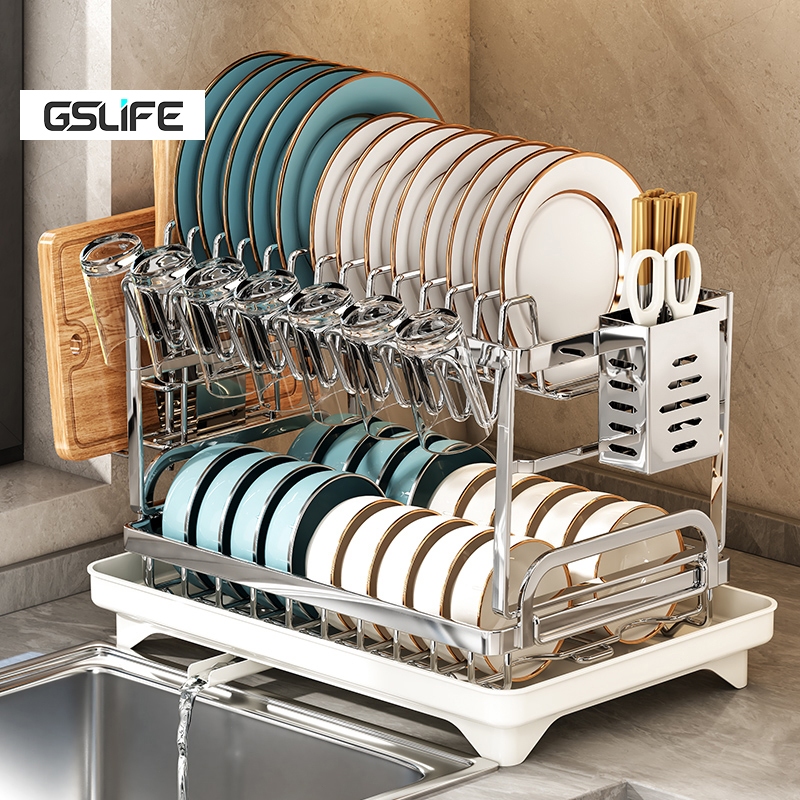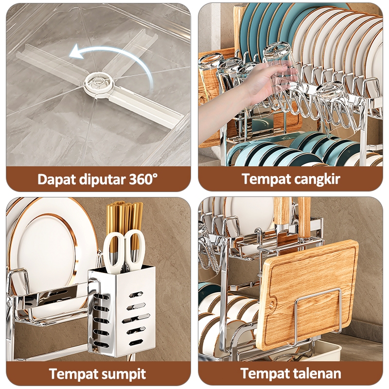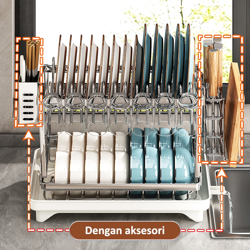 GSLIFE 【Tanpa Instalasi】 Rak Piring Stainless Steel 2 Susun Rak Piring Minimalis Rak Piring Wastafel Dengan Aksesoris