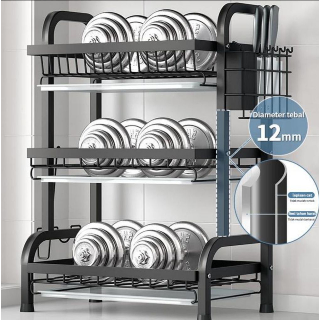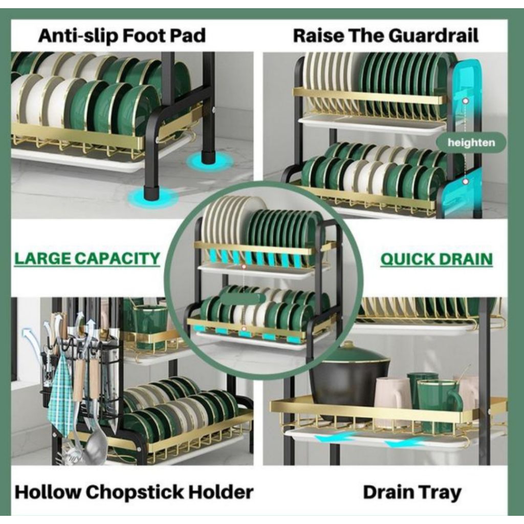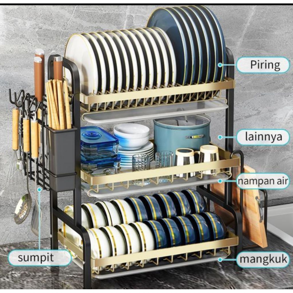 Rak Piring Stainless Steel Rak Cuci Piring Rak Dapur Penyimpanan 2 & 3 Susun Rak Mangkuk Piring