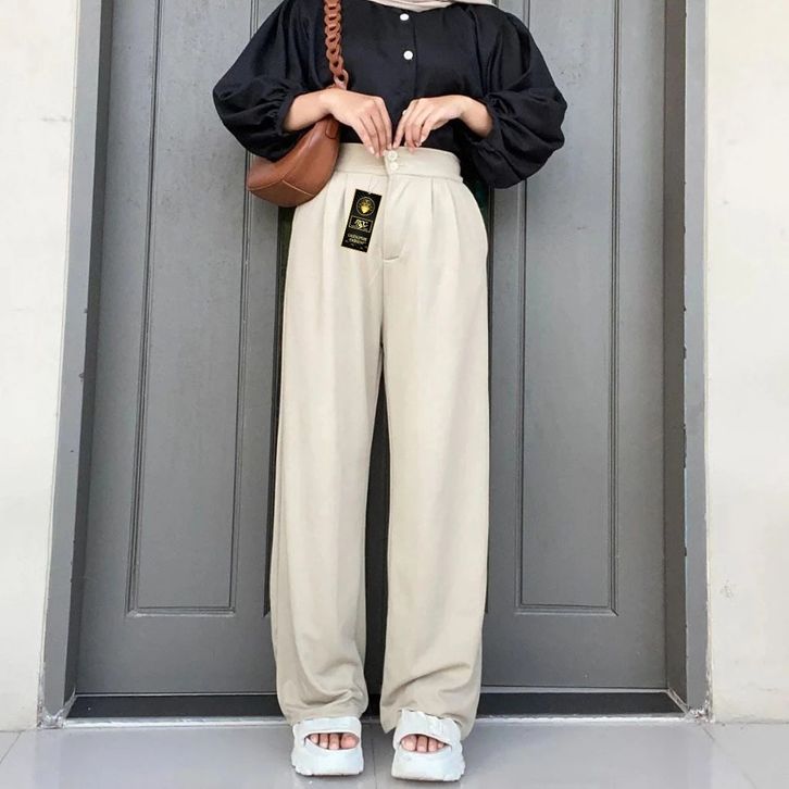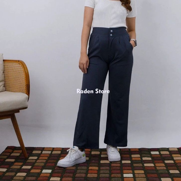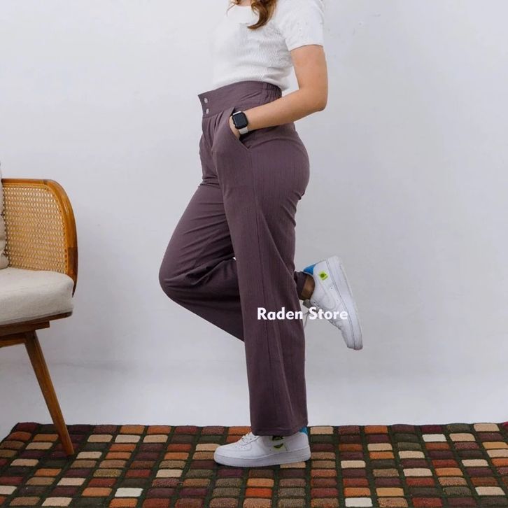 Knit Pants Celana Kulot Knit Kancing Highwaist Wanita Celana Panjang Formal Wanita Celana Kerja Celana Kulot Panjang
