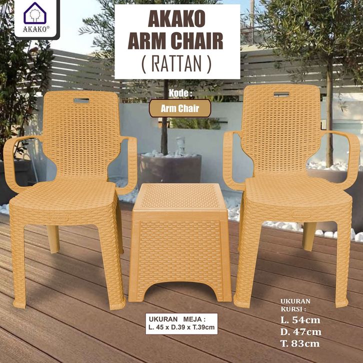 Hi Mart Terlaris AKAKO - Kursi Santai Plastik Arm Chair RATTAN Kursi Teras / Kursi Taman Outdoor