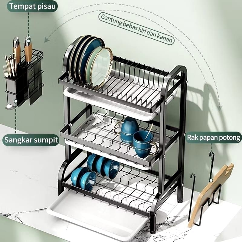 02 Rak Pirinng Stainlees Steel Anti Karat Tempat Piring Wastafel Rak Piring Mangkok Gelas