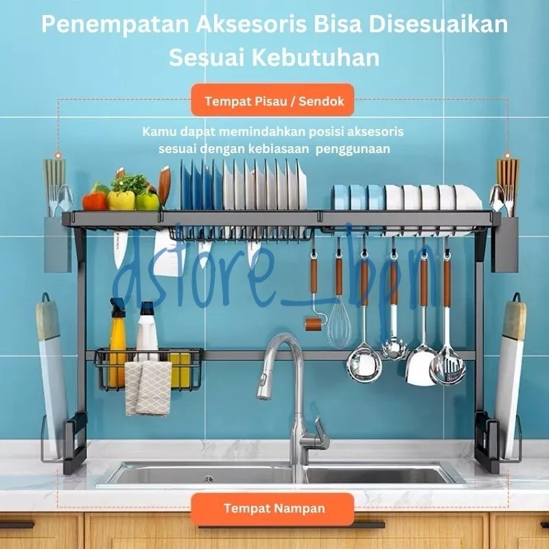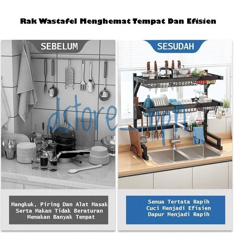 ORE Rak Dapur Stainless Hitam Rak Wastafel Rak Piring & Peralatan Dapur Kokoh Kuat Dengan 2 UKURAN
